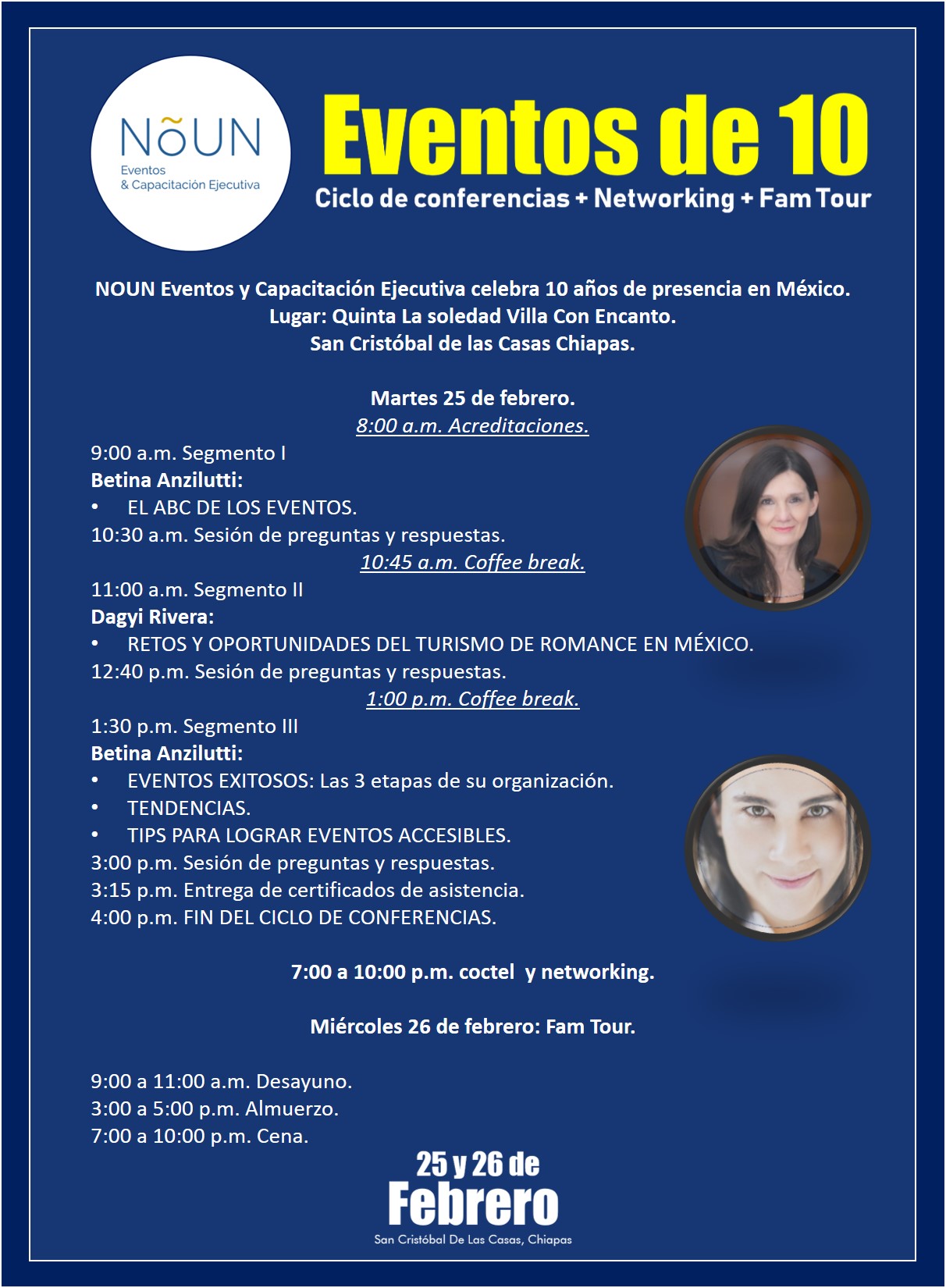NõUN Eventos y Capacitación Ejecutiva, cumple 10 años de presencia en México y lo celebra de manera especial, con un ciclo de conferencias y Networking que se llevarán a cabo el 25 y 26 de febrero próximo.