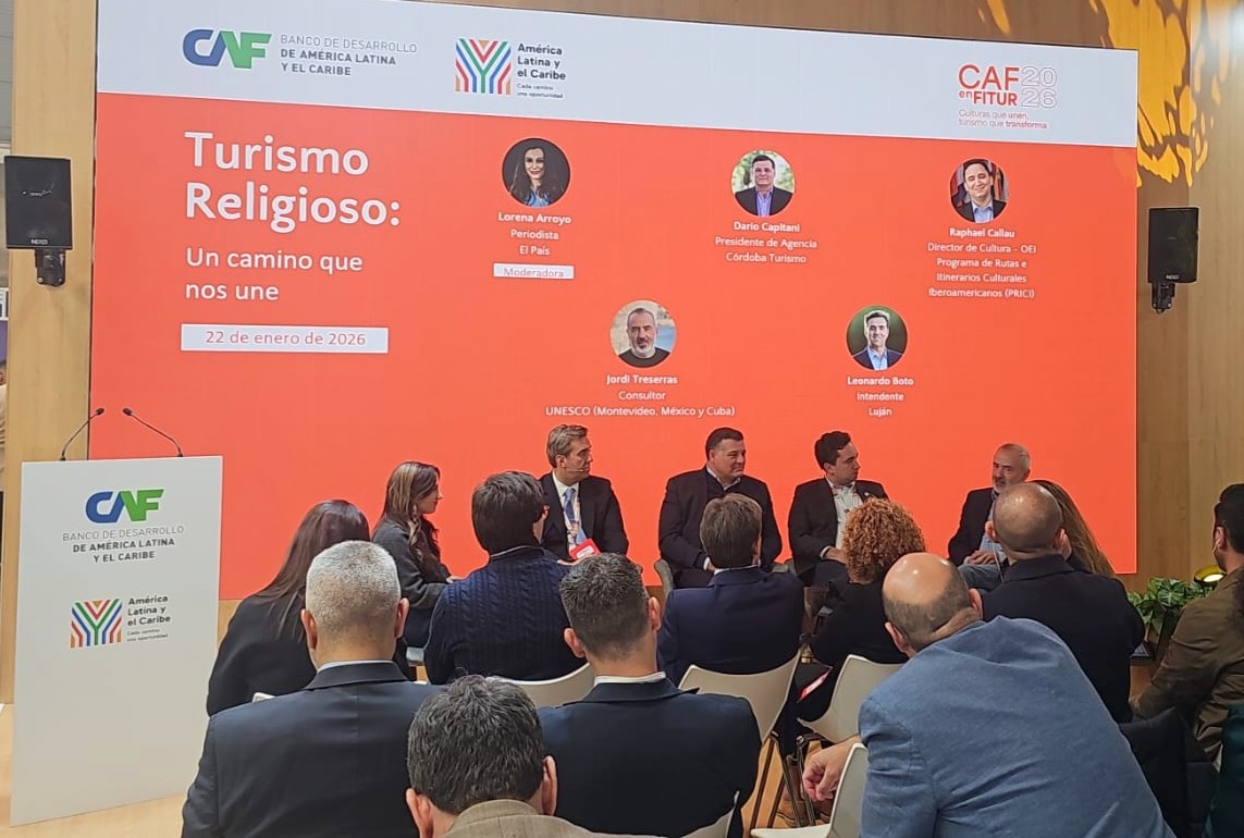El evento en FITUR convocado por la CAF con el lema “Turismo Religioso: Un camino que nos une”, fue moderado por Lorena Arroyo, periodista del diario “El País” de España.