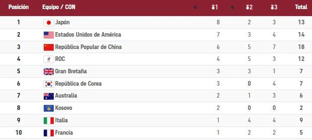 El medallero de los Juegos Olímpicos de Tokio 2020 muestra en lo alto nombres de países que habitualmente compiten por los primeros puestos, como Estados Unidos, China, el anfitrión Japón y Gran Bretaña. Pero en el top 10, un nombre salta inmediatamente a la vista: ROC.