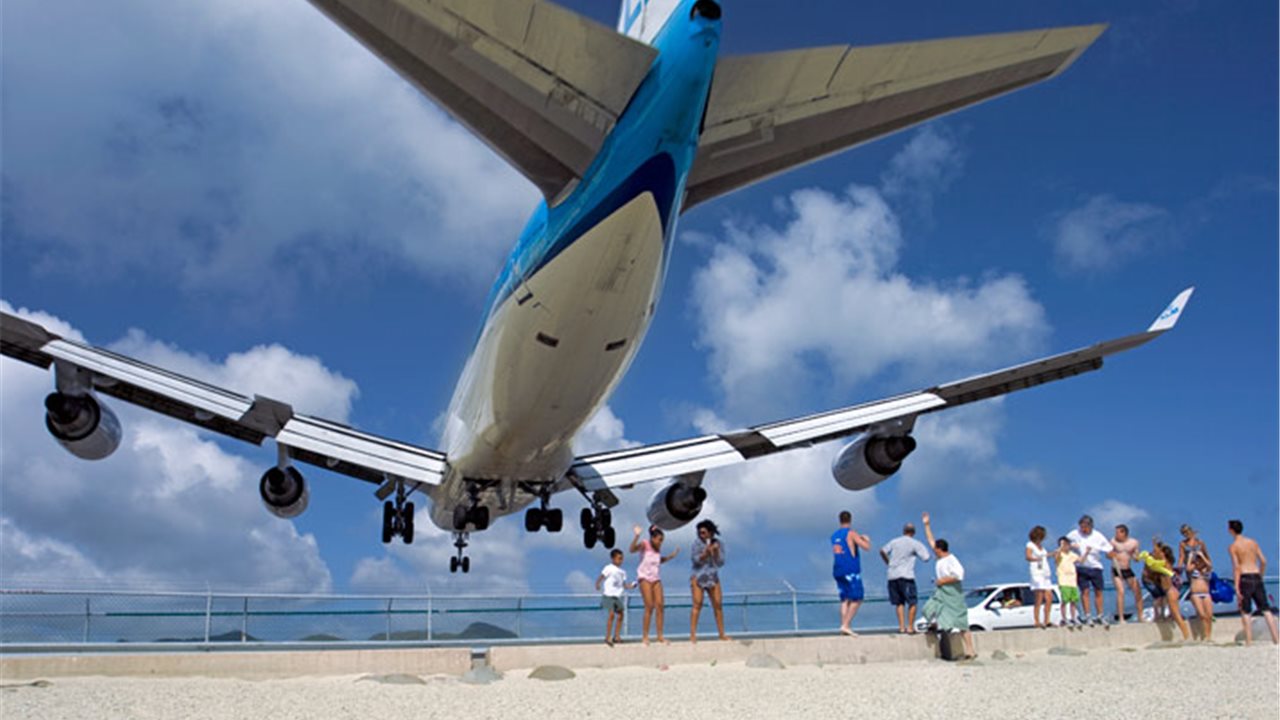 En segundo lugar, el aeropuerto está tan cerca de la playa que los aviones vuelan a tan solo unas pocas decenas de metros de distancia de las cabezas de los turistas que nadan en el mar.
