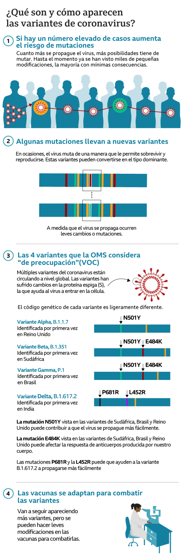 Para James Gallagher, corresponsal de salud de la BBC, se trata de la peor variante que se haya visto hasta el momento. La OMS declaró el viernes pasado que esta nueva mutación es una "variante de mucha preocupación", pues además de ser altamente contagiosa, trae convoyada cualidades miméticas que la ayudan a burlar el sistema inmunológico de las personas infestadas.