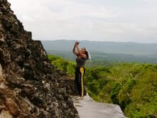 Nuestra próxima parada fue San Ignacio, un viaje de dos horas por una carretera bien pavimentada a través de una selva y hacia un poblado ubicado en la ladera de una colina que combina el estilo del viejo Oeste con calles angostas y tiendas tropicales fabricadas de madera. Aquí uno encuentra a viajeros guatemaltecos, arqueólogos, trabajadores de los Cuerpos de Paz, norteamericanos retirados y turistas, además de amplias posibilidades para la observación de aves (unas 600 especies), ciclismo, senderismo, recorridos en canoa por el río Macal y la visita la instalación de cría de la mariposa morfo azul. Mientras entrábamos al pueblo, cubierto por una ligera bruma tropical, para nuestra entrevista con el notable arqueólogo beliceño, el Dr. Jaime Awe, quedamos encantados con el mercado al aire libre y los vendedores guatemaltecos. Tras un delicioso almuerzo con el Dr. Awe en el majestuoso San Ignacio Resort, una interesante entrevista donde debatimos sobre sus más recientes esfuerzos arqueológicos y una botella de cerveza Belikin, partimos hacia las ruinas selváticas de Xunantunich (“la señora de la roca”).