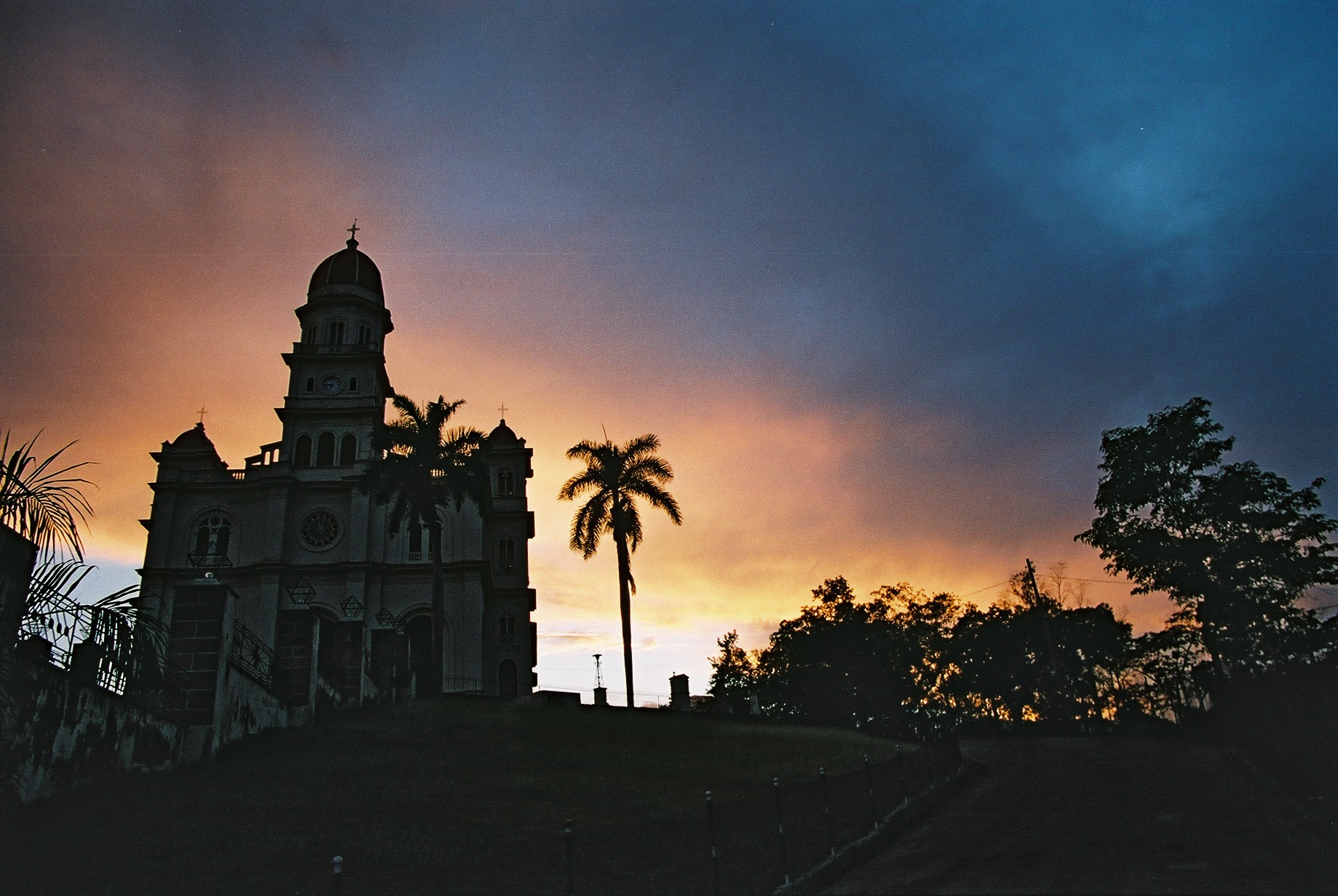 Propongo llegar a este pueblo al atardecer. Subir por la empinada calle que lleva a su ecléctico templo. Desde el atrio, sentir el viento suave que satura de un aliento dulce esta elevación. Contemplar el horizonte de palmas, el verde que tiñe las siluetas recortadas de la Sierra Maestra. Coincido con quien afirmó que no hay mejor trono para una reina que esta colina. A esta hora, el silencio suele hacerse abundante en el templo, quizás roto sólo, por el leve murmullo de una oración, las luces ya moribundas y en fuga de los vitrales, el calor parpadeante de algún cirio y el llamativo color de las flores llevadas en ofrenda. Para poder atrapar entonces el misterio queda únicamente buscar la pequeña imagen y abandonarse en su contemplación. Y aclaro que no se necesita fe religiosa para acceder al milagro, basta como dijo el poeta, experimentar ante la virgen morena, como se nos estremece el corazón.
