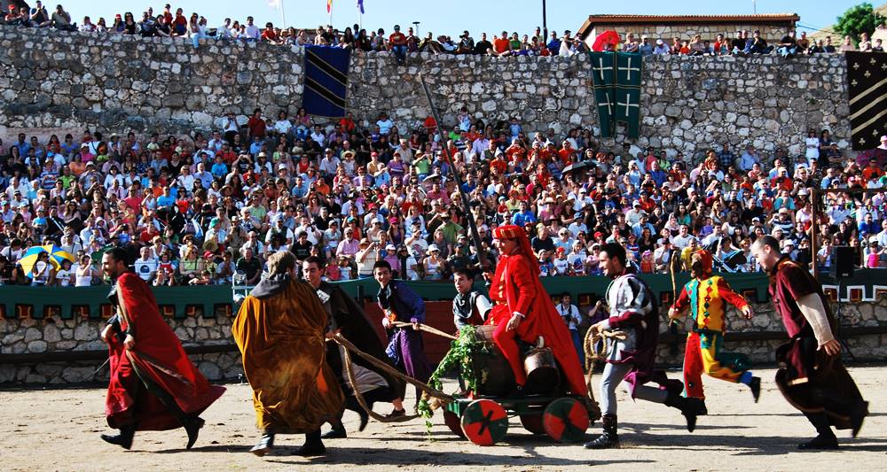 Además de la obra teatral romántica, otra de las actividades de este Festival es la representación de las Justas Caballerescas en el Palenque. Los ideales bélicos y caballerescos de la época medieval se representan en Hita, estando presente la figura del Arcipreste en el combate entre Don Carnal Y Doña Cuaresma; personajes que recordarás del Libro del Buen Amor.