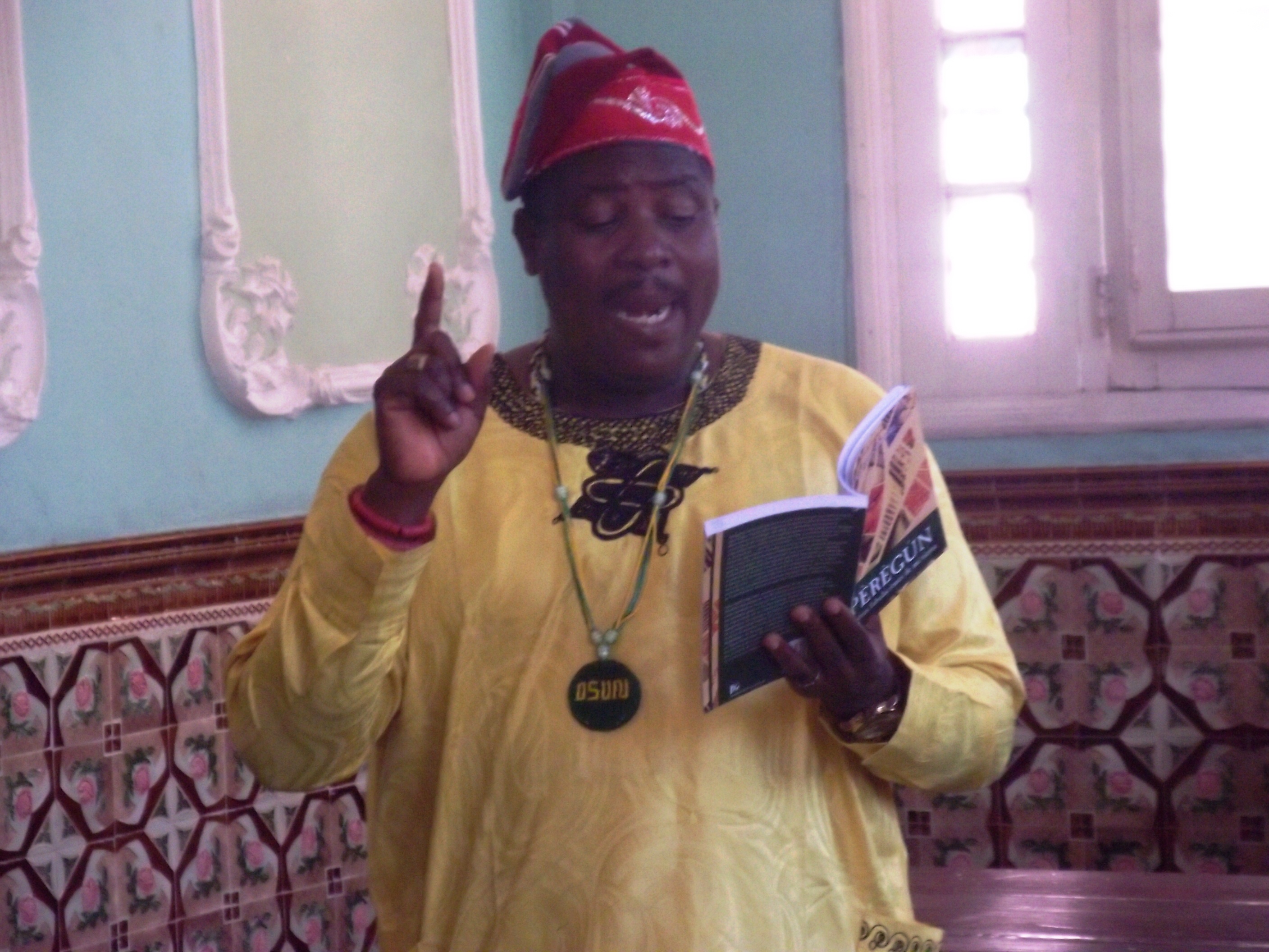 El Doctor Félix Ayoh OMIDIRE, profesor titular y Director del Departamento de Estudios Latinoamericanos de la Universidad ObafemiAwolowo de Ilé-Ifé de Nigeria, presentó en la Casa del Caribe su libro “PÉRÉGÚN y otras fabulaciones de mi tierra”, recién publicado por la editorial Arte y Literatura, y que será presentado también en la XXV edición de la Feria del Libro en Santiago de Cuba.