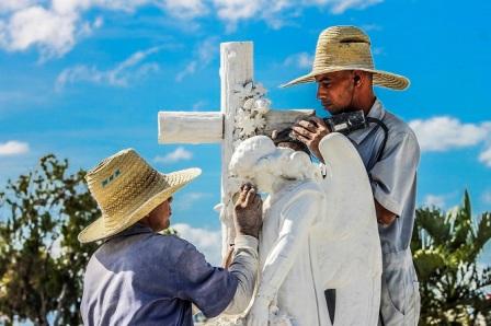 “A mediados del 2013 y hasta la fecha se trabaja en la restauración del patrimonio funerario (bóvedas) que tanto sufrió con el huracán Sandy, labor que se realiza con el apoyo de los artistas del Fondo de Bienes Culturales de la provincia Granma y los restauradores del cementerio perteneciente a la Oficina del Conservador de la Ciudad.”