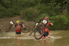 Los cruces de ríos fueron muy exigentes durante los primeros compases de la etapa.