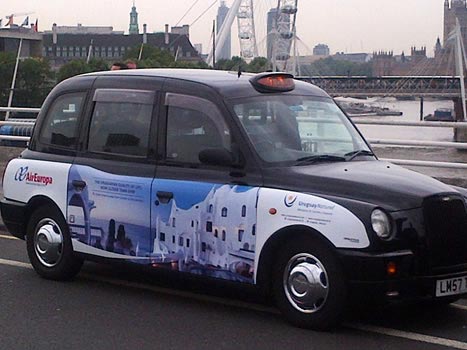 En el marco de una campaña de promoción de Uruguay que está realizando el Ministerio de Turismo y Deporte junto con Air Europa, 75 taxis londinenses están luciendo imágenes turísticas del país sudamericano.