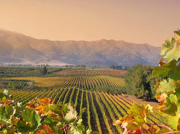El Valle de Colchagua aparece destacado por ser un lugar poco turístico y por el maravilloso paisaje compuesto por viñas sobre lomajes y la cordillera de Los Andes como telón de fondo.