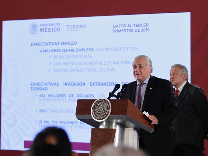 En materia de expectativas de empleo para el cierre del tercer trimestre de este año, son cuatro millones 326 mil empleos, es decir, 4.4 por ciento más que en 2018, ya que en lo que va del año, se han generado en materia turística 181 mil empleos más.