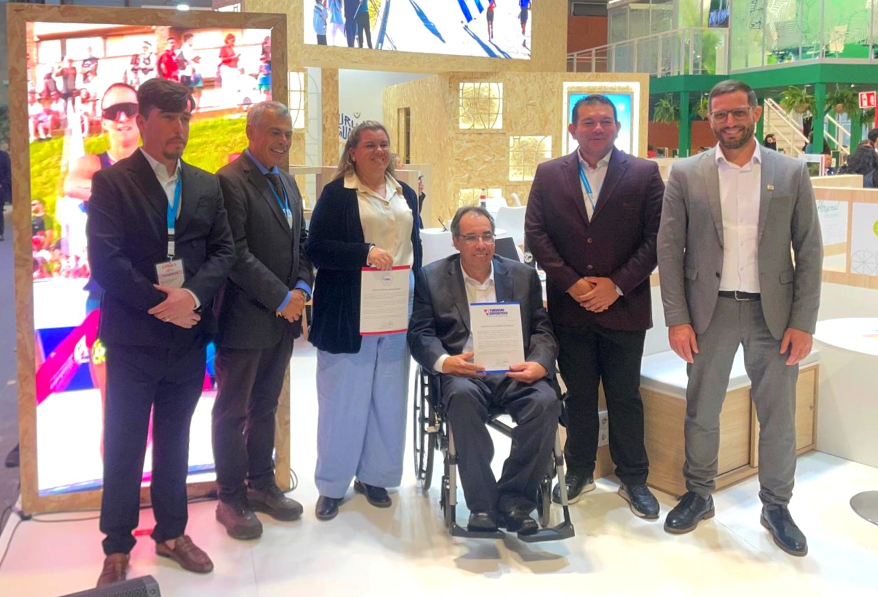 En la presentación se encontraron, Pablo Menoni, Ministro de Turismo de Uruguay; Andrés Sarmiento, CEO y Director General de la Red Latinoamericana de Turismo Deportivo; Jhon Santos, experto en gestión deportiva y Mauricio Soria Macchiavello, alcalde de Iquique (Chile) que, además, asumió la presidencia de la Red Latinoamericana de Turismo Deportivo (RELATUD), haciéndose oficial el nombramiento en FITUR 2026.